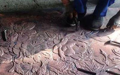 鍛造(咱們這兒特指鍛銅)——嘿!這可是體力活加技術(shù)活!拿銅板當(dāng)畫(huà)布,錘子當(dāng)畫(huà)筆,全靠師傅一錘子一錘子敲打出來(lái)的!尤其是浮雕、壁畫(huà)這類講究深淺效果的,這手藝絕了!純手工的精細(xì)活兒。